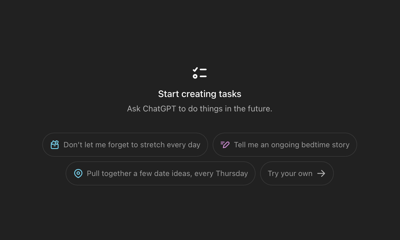 At its core, Tasks is a scheduling tool, but it feels like much more than that. It's a step forward, transforming ChatGPT from a reactive tool into something more proactive - instead of simply waiting for your input, ChatGPT now anticipates your needs—delivering what you’ve asked for exactly when you need it.