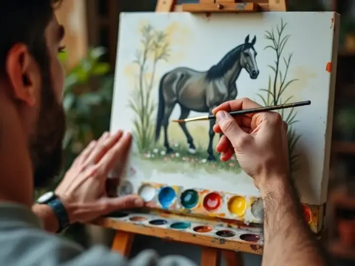 3His other hand over the paint colors.Stable Diffusion - Hands and fingers generated incorrectly ❌